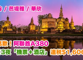 阿聯酋航空推出新優惠,官網賣來回連稅$1,426起!如果上 Expedia「機票+酒店」一齊訂仲抵玩!以入住最平嘅住宿為例,曼谷 / 芭堤雅 / 華欣4日3夜套票連稅只需$1,606起、5日4夜$1,626起、8日7夜$1,786起! 以上價格係2人同行嘅每位價錢,已包阿聯酋A380來回曼谷機票、20kg寄艙行李額、飛機餐、住宿、稅項。 出發日期至明年5月,旺季及部分日子不適用。大家可以自訂旅程長短,最長可以玩31日30夜。 留意番,航班去程只限星期日至四,回程只限星期一至五。另外,阿聯酋航空飛曼嘅航班只有晚機去下午機返,如果係打工仔,放咗工就可以上機。又或者如果你主力係玩芭堤雅或華欣,可以喺機場酒店休息一晚,抖足精神第2朝一早再喺機場直接搭車過去反而仲方便。 航班時間: 去程 EK385 21:50-23:45 回程 EK384 14:00-18:05 曼谷 / 芭堤雅 / 華欣「機票+4星或5星級酒店」推介: 機票+曼谷蘇坤蔚路 X2 共鳴酒店 ★★★★|連稅$2,048起 (以2月4日去,2月7日返為例) 2017年3月開業嘅全新酒店,走精品酒店路線,設計時尚有型!位於 Sukhumvit 嘅低密度住宅區,距離「BTS.On Nut 站」只有約3分鐘步程,隔離有大型超市 Tesco Lotus...