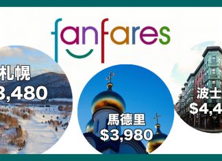 國泰 / 國泰港龍 fanfares 嚟到第262期喇!今期以札幌、馬德里較為吸引!其他航點嘅價錢就唔算話好吸引! 機票: 寧波$880 (連稅$1,241) 西安$880 (連稅$1,241) 達卡$1,980 (連稅$2,933) 札幌$3,480 (連稅$3,945) 馬德里$3,980 (連稅$4,741) 波士頓$4,480 (連稅$5,296) 3日2夜套票 (需2人同行): 峴港$1,720 (連稅$2,138) 沙巴 (亞庇) $1,840 (連稅$2,235) 確實嘅出發日子及航班時間於星期二朝早8點在 fanfares 網站公佈。每期會分開自由揀日子及指定日子Last minute 出發。 預訂資訊: 估計出發日期:2017年12月28日-2018年1月28日;2017年11月5日-11月11日 (指定日子優惠) 開賣日期:2017年10月31日8am (售完即止) 預訂網址:http://www.cathaypacific.com/fanfares 此外,可以直接打去國泰訂位部 2747-1888、港龍訂位部 3193-3888 購買 fanfares...