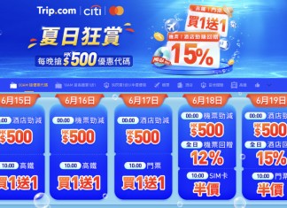 Trip.com 推出一連五日 夏日狂賞 Mega Sale!每晚搶 $500 及 $200 優惠代碼,合共總值 $2,100 酒店優惠券碼及 $1,400 機票優惠券碼!仲有高鐵「買一送一」;玩樂門票「買一送一」;酒店回贈 15%;機票回贈 12%!好吸引呀!
