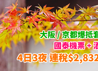 香港飛大阪單程$328起,來回連稅$1,031起!
