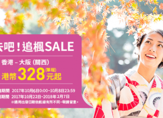 限時3日!樂桃.香港飛大阪單程$328起!2018年2月7日前出發 – 樂桃航空 (優惠至10月8日)