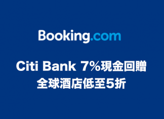 Booking.com 長期優惠!Citi Bank 7%現金回贈、全球酒店低至5折!