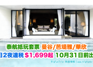 泰抵玩套票!泰航.曼谷/芭堤雅/華欣「機票+酒店」3日2夜連稅$1,699起、5日4夜連稅$1,738起!10月31日前出發 – 泰國航空