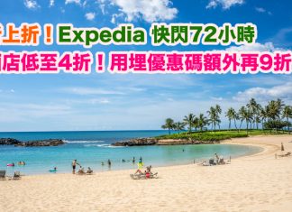 酒店折上折!Expedia 快閃72小時.環球酒店低至4折!用埋優惠代碼額外再9折!