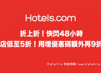 折上折!快閃48小時.Hotels.com 全球酒店低至5折!用埋優惠代碼額外再減!