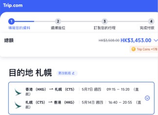 【港航.北海道快閃優惠】香港飛札幌來回連稅$2,823起!包寄艙行李+手提行李+隨身物品+飛機餐!靚時間早去下午返!3至6月出發