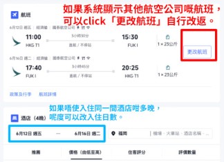 (可自行選擇其他航空公司如港航、HK Express 等,價錢會相應調整)
