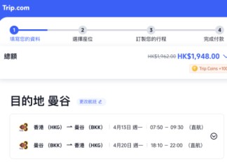 預訂網址 - Trip: https://hk.trip.com