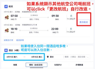 (可自行選擇其他航空公司如泰航、港航等、HK Express 等,價錢會相應調整)