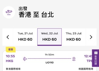 【HK Express 台北閃劈】香港飛台北$60起!來回連稅八百起!3至4月指定日子出發