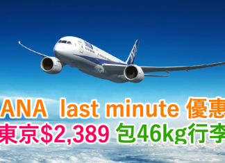 ANA 東京last minute!香港來回東京$2,389!包46kg行李