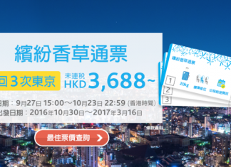 香草航空.東京繽紛香草通票.3次來回東京只需$3,688!每程包20kg行李、航班任揀、座位任揀、無限次免費更改航班!