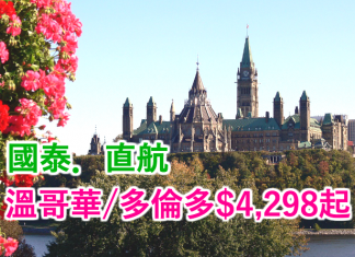 香港直航來回溫哥華只需$4,298 (連稅$4,907)、多倫多$5,208 (連稅$5,861)