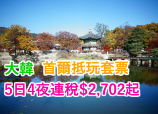 大韓抵玩套票!首爾5日4夜套票「機票+酒店」連稅$2,702起!