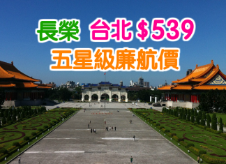 長榮全年優惠!香港來回台北$539!可停留一個月!2017年6月30日前出發