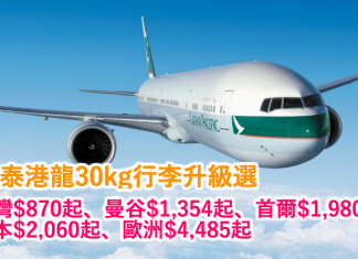 國泰港龍30kg行李升級選!台灣$870起、曼谷$1,354起、首爾$1,980起、日本$2,060起、歐洲$4,485起