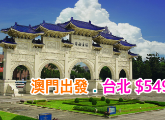 澳門來回台北只需$549 ($892) 起!9月30日前出發。