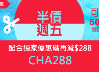 額外減$288優惠碼:CHA288 (預訂金額金額滿$2,888)