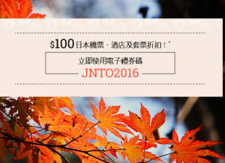 預訂全線機票、酒店、套票優惠,於付款前輸入指定優惠碼「JNTO2016」每單減即$100!
