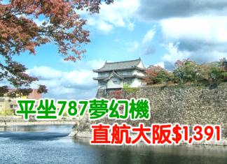 香港直航來回大阪只需$1,391 (連稅$1,833)!出發日期去到2017年3月底。