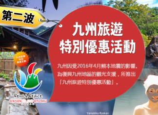 為復興九州旅遊業,JAPANiCAN (e路東瀛) 推出第二波嘅酒店同溫泉旅館優惠!地點包括熊本、福岡、鹿兒島、大分、長崎。