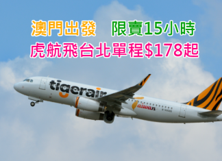 堅平!澳門飛台北單程只需$178!10月29日前出發 – 虎航 Tigerair