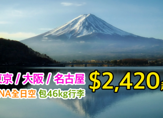 ANA激安!香港來回東京、大阪、名古屋$2,420起!包46kg行李