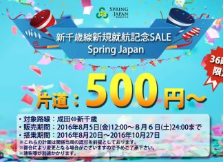 春秋航空日本 (Spring Japan) 開辦東京成田飛札幌新航線,並會喺明早 (8月4日) 11am 推出限時36小時震憾優惠!