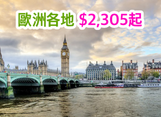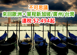 香港來回歐洲各地+單程飛新加坡|連稅$2,494起