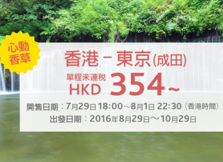 香草心動價!香港飛東京單程$354起!來回連稅唔駛一千!10月29日前出發