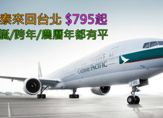 國泰推出台北新優惠!出發日期仲去到2017年2月15日!