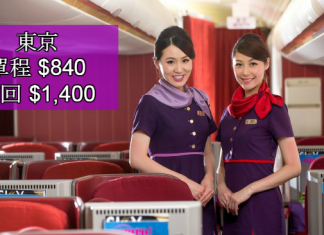 先睇單程優惠:香港單程飛東京$1,050 (連稅$1,170),東京單程返香港$840 (連稅$1,039)!