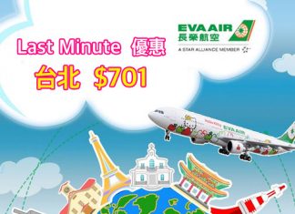 長榮Last Minute!香港來回台北只需$701,連稅$942!