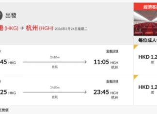 香港航空杭州優惠!香港飛杭州來回連稅只需 $1,240起!呢個價已包1件23kg 寄艙行李+1件手提行李及1件隨身物品。
