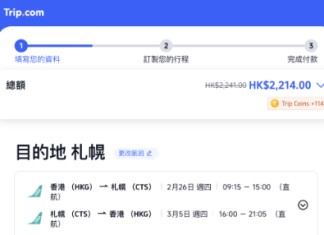 預訂網址 - Trip: https://hk.trip.com