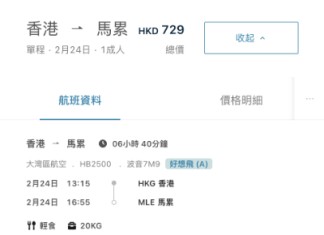 (可自行選擇其他航空公司如國泰、港航、泰航、阿聯酋等,價錢會相應調整)