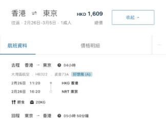 步驟一:先揀航班