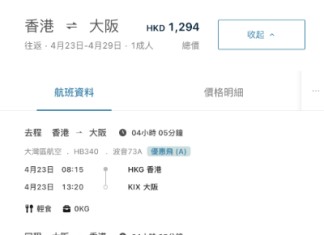 以乘搭 HK Express,週末出發為例 (兩位一房計):