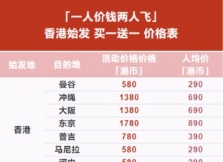 【港航.買一送一】曼谷$290起、東京$890起、大阪$690起、沖繩$690起、布吉$390起、峇里島$890起、河內$290起、馬尼拉$290起