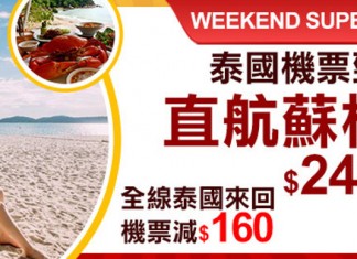 【泰國閃減】全線泰國機票訂滿$1,600減$160!來回連稅:國泰飛曼谷 / 布吉$2,448起、阿聯酋飛曼谷$1,997起、泰航飛曼谷$2,417起、曼谷航空飛蘇梅$3,734起