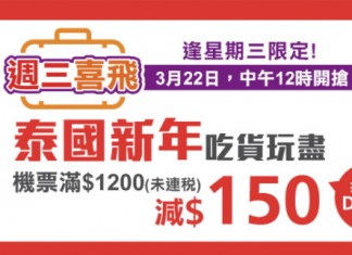 【泰國.限時快閃優惠】全線機票減$150!香港來回曼谷連稅$1,570起!優惠只限一天 – 永安旅遊