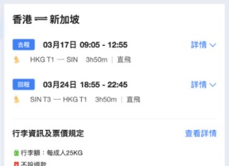 【新航.新加坡超抵價】香港飛新加坡來回連稅$1,472起!包25kg寄艙行李!2至6月出發 (優惠至1月28日)