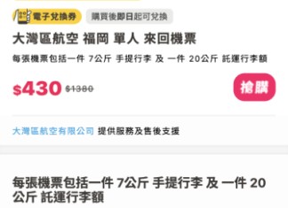 不過,今次優惠要先喺鄰住買購買 $430 電子兌換券,再用電子兌換券去大灣區航空官網預訂機票。