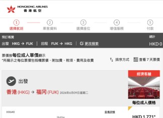 香港航空福岡早鳥優惠!香港飛福岡來回連稅 $1,771起!價錢唔錯,宜家福岡好少有優惠!呢個價都值得入手,不過有平嘅日子唔多。