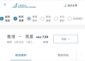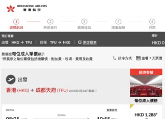 (可自行選擇其他航空公司如港航、HK Express,價錢會相應調整)