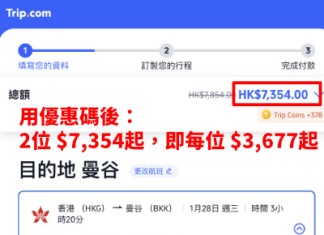留意呢隻優惠只限於 Trip.com 訂購,星宇官網並無呢隻優惠。
