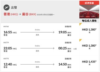 【港航.曼谷優惠】香港飛曼谷來回連稅$1,380起!23kg寄艙行李+手提行李+隨身物品!3至6月出發