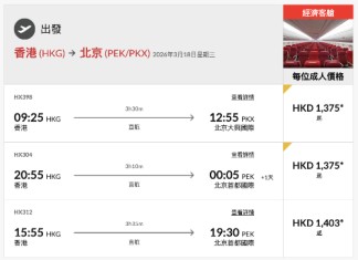 香港航空北京早鳥優惠!香港飛北京來回連稅只需 $1,375起!呢個價已包1件23kg 寄艙行李+1件手提行李及1件隨身物品。