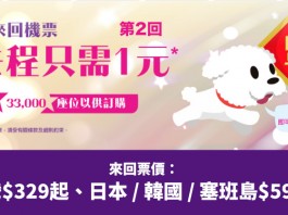 【第2回】買來回.去程$1!香港來回台灣$329起、日本 / 韓國 /...