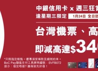 Trip.com:以中銀信用卡預訂機票滿 $1,800 或以上 (未連稅) 即減 $180 優惠碼:BOCFLIGHT